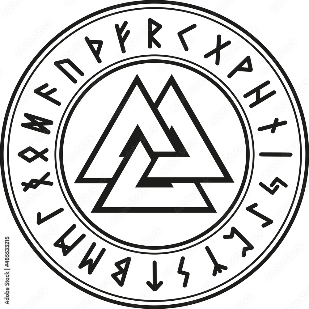 Ancient Scandinavian Symbol Valknut Sign Knot Of Fallen Warriors Well As The Sign Of Odin Surrounded By Runes Stock Vektorgrafik Adobe Stock